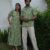 This navy blue matching outfit set includes a women?s midi dress and a men?s short-sleeve shirt, both featuring vibrant red ethnic prints. Perfect for couples who love twinning in style at casual outings, festive gatherings, or vacations.